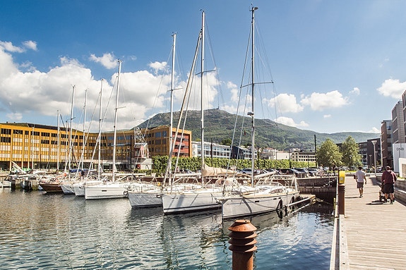 Et moderne massivtrebygg med sentral beliggenhet i Solheimsviken
