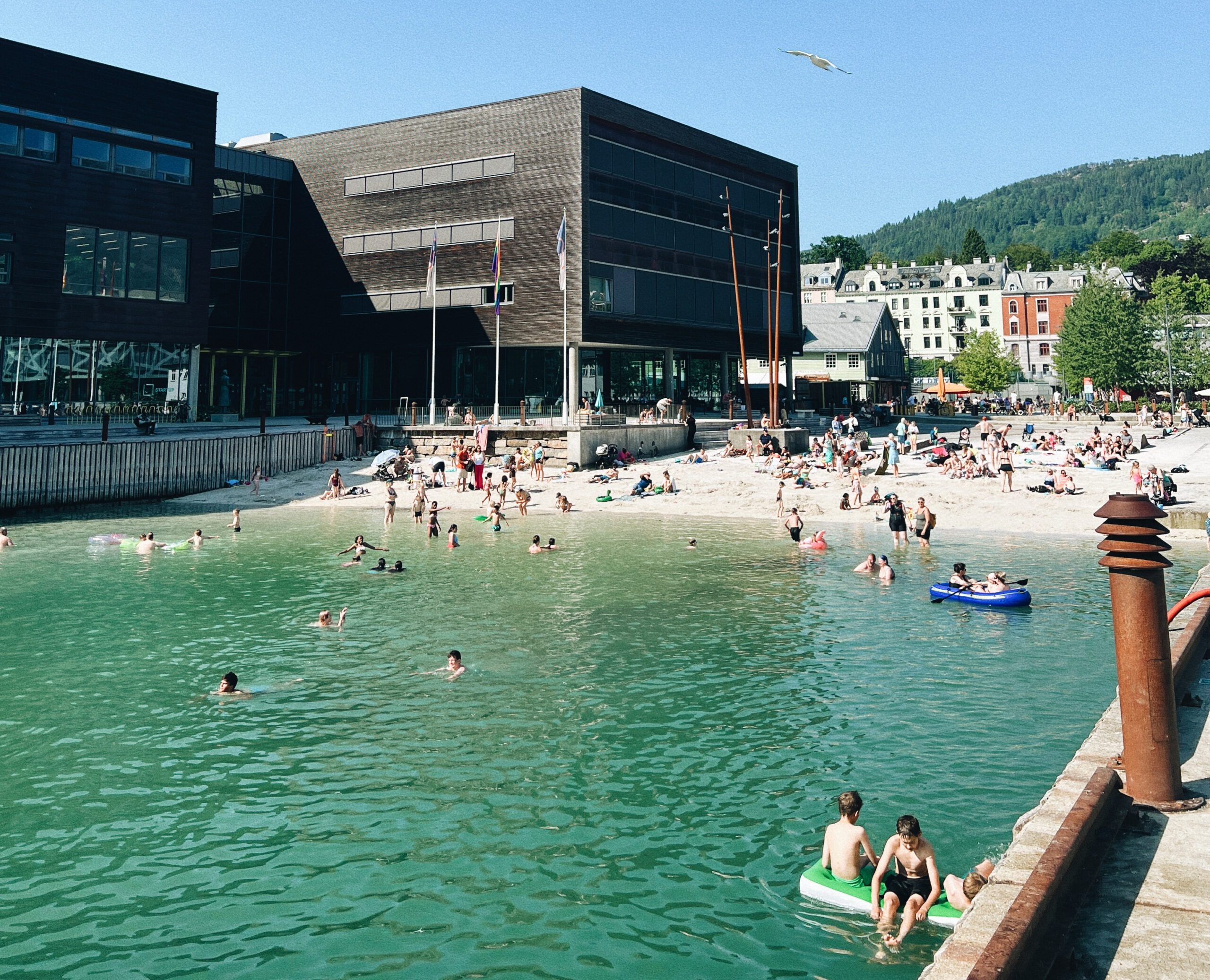 Byens flotteste badestrand lokalisert like ved småpudden, BI, Cornerteateret, Baker Brun og Bergen Kaffebrenneri. Bystrandfestivalen ble arrangert her for første gang i august 2021.