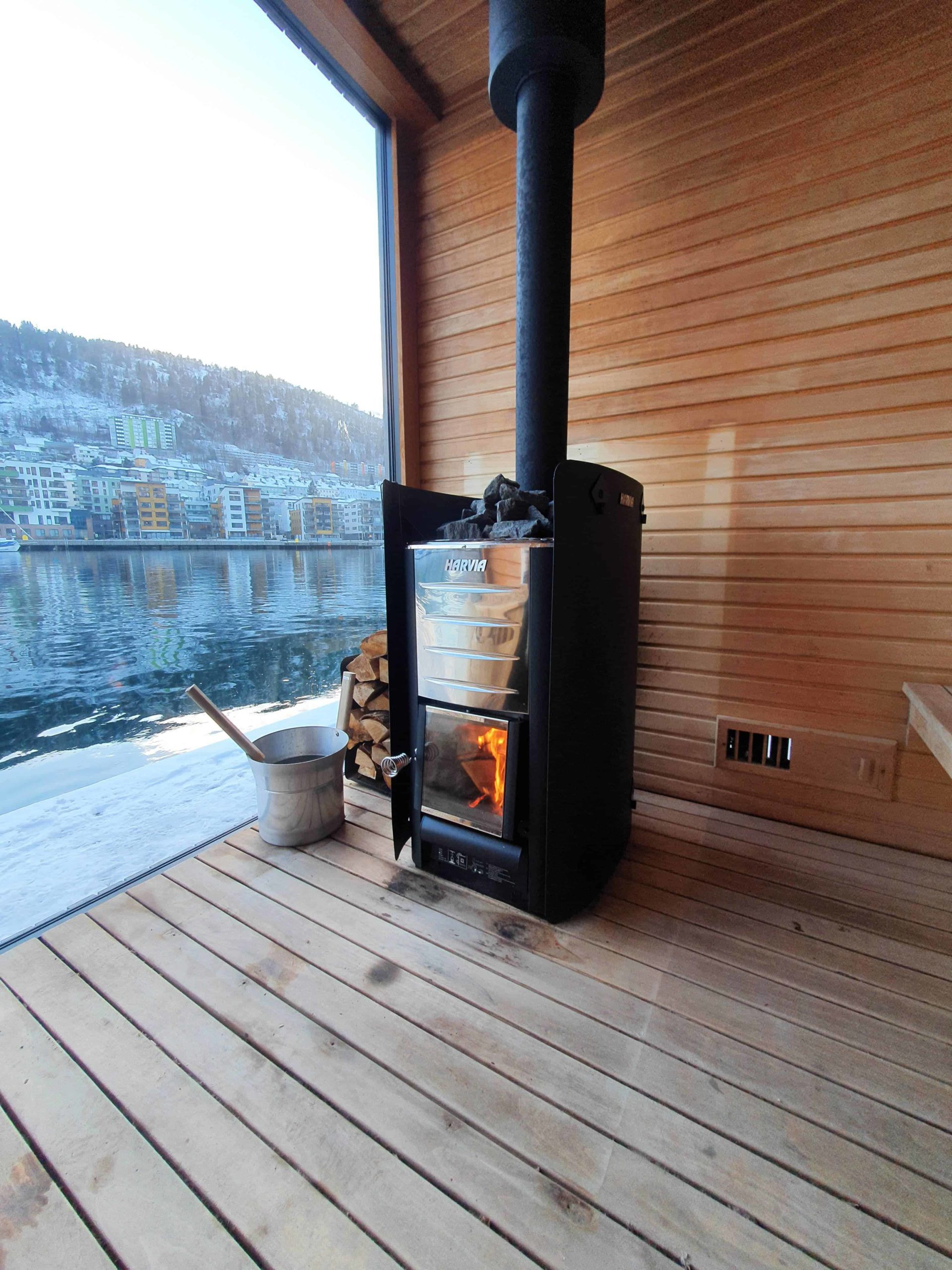 Bilde av ovn i badstue til Heit Bergen Sauna på Marineholmen